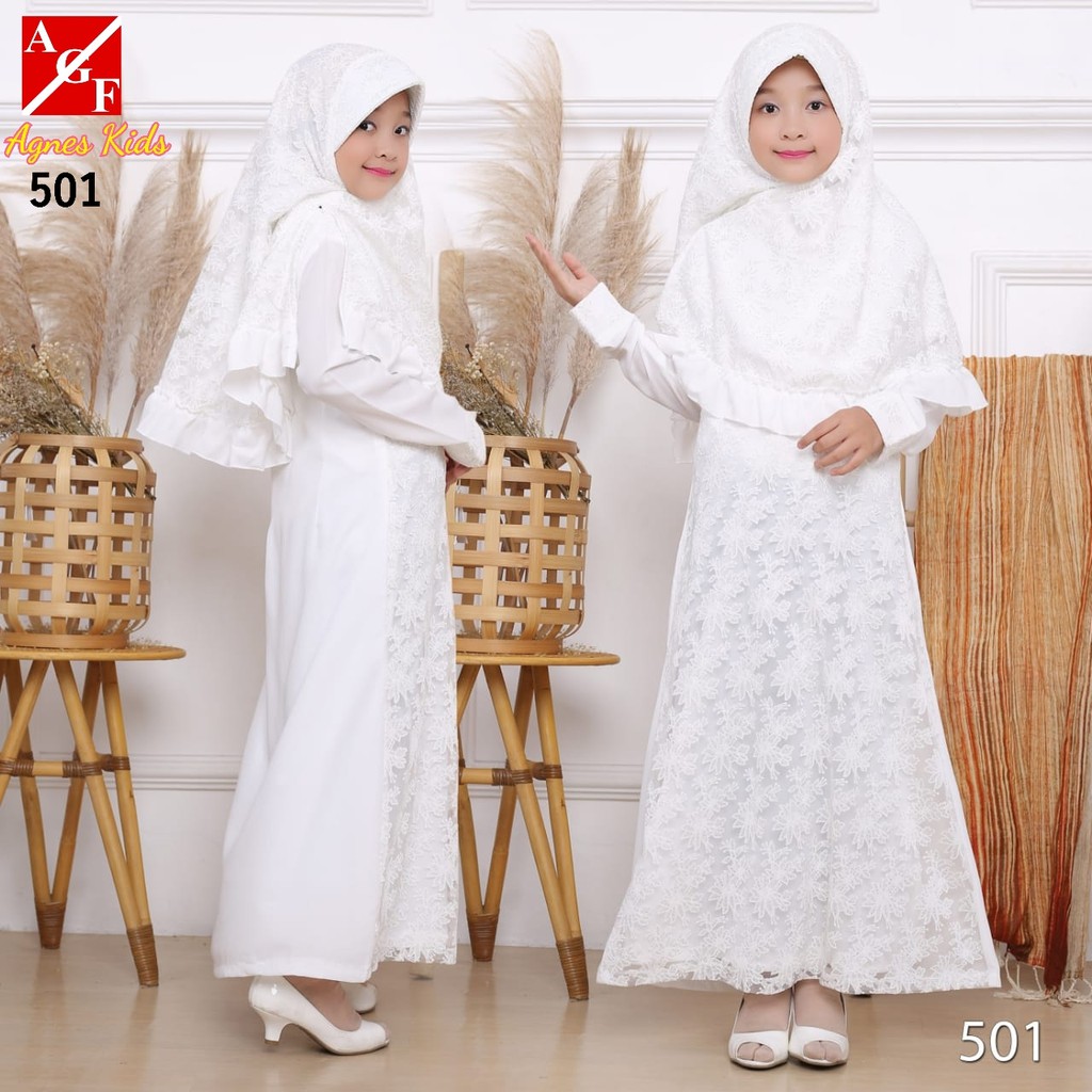 AGNES Gamis Putih Anak Perempuan Baju Muslim Baju Umroh Anak Baju Lebaran Anak Syari Anak #526 | Shopee Indonesia