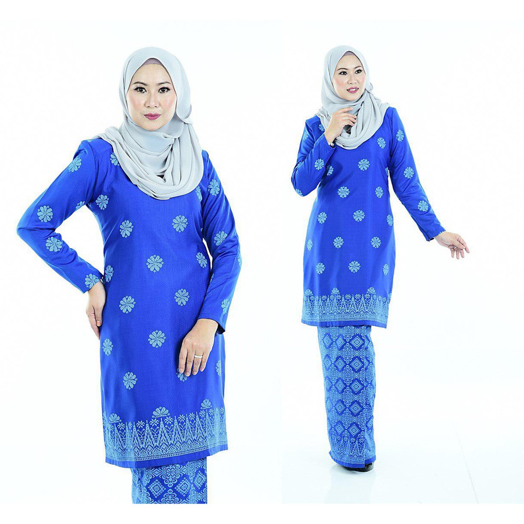 RESTOK SZ 36-48] set Sedondon Mak Anak Baju Kurung Corak Songket Bunga Tabur Royal Blue | Shopee Malaysia