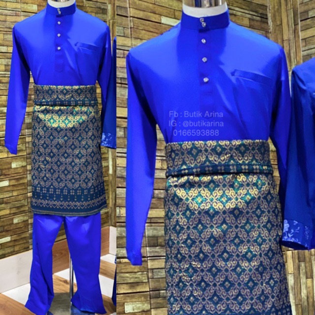 Baju Melayu Slim Fit Gold Biru Royal Blue | Shopee Malaysia