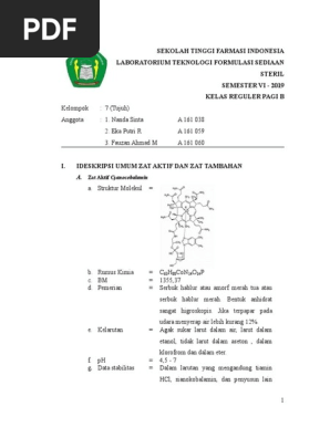 Sekolah Tinggi Farmasi Indonesia Laboratorium Teknologi Formulasi Sediaan Steril Semester Vi - 2019 Kelas Reguler Pagi B