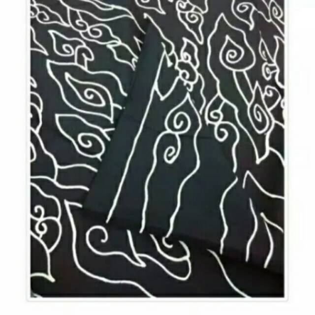 Kain batik katun tulis motif mega mendung dasar hitam list putih | Shopee Indonesia