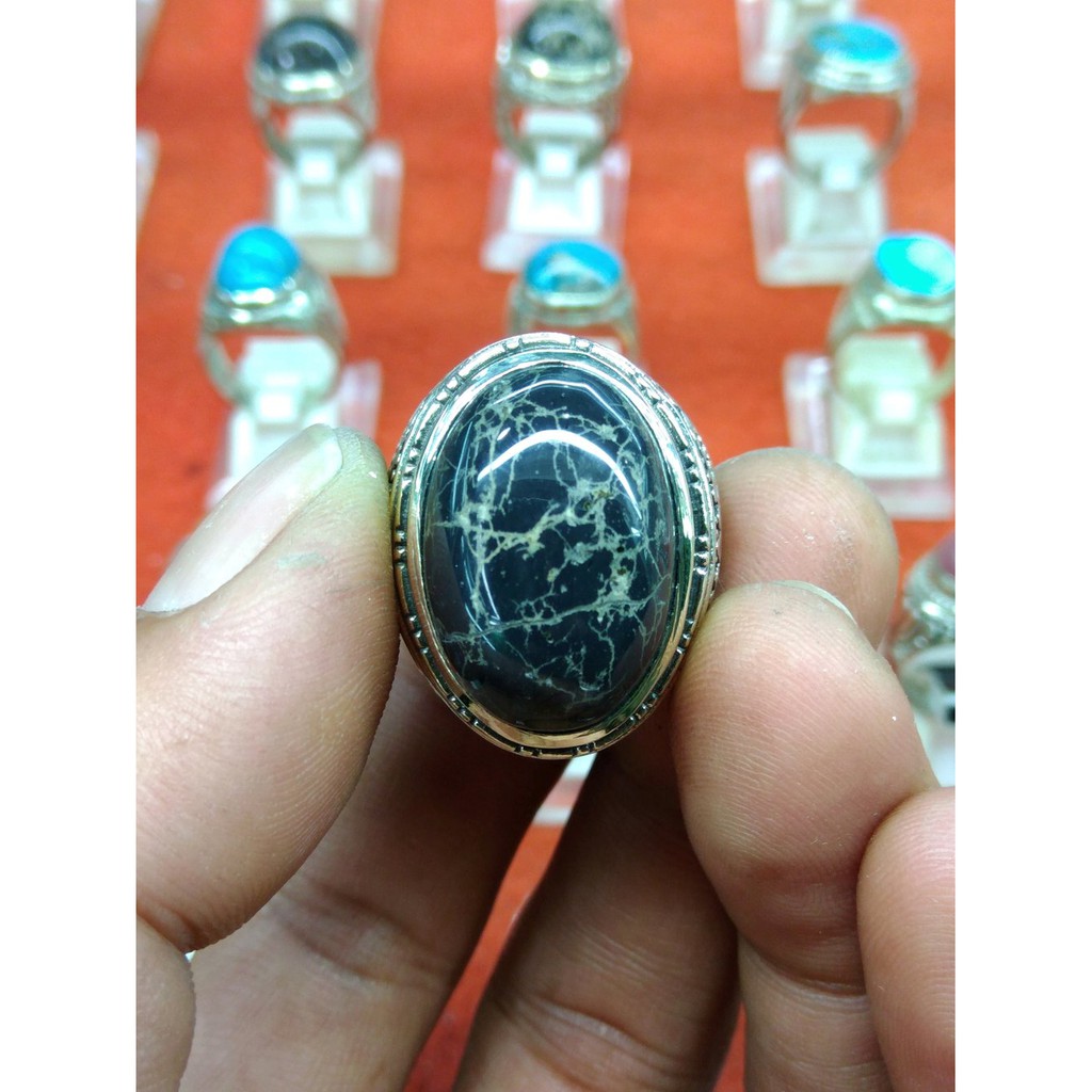 Cincin Batu Akik Pirus Urat Hitam Unik Langka Top Created di Lapak Permata Surga | Bukalapak