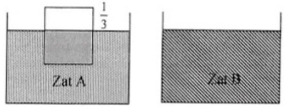 Sebuah benda berbentuk balok dicelupkan dalam cairan A yang massa jenisnya 900 kg.m-3 ternyata 1/3 - Mas Dayat