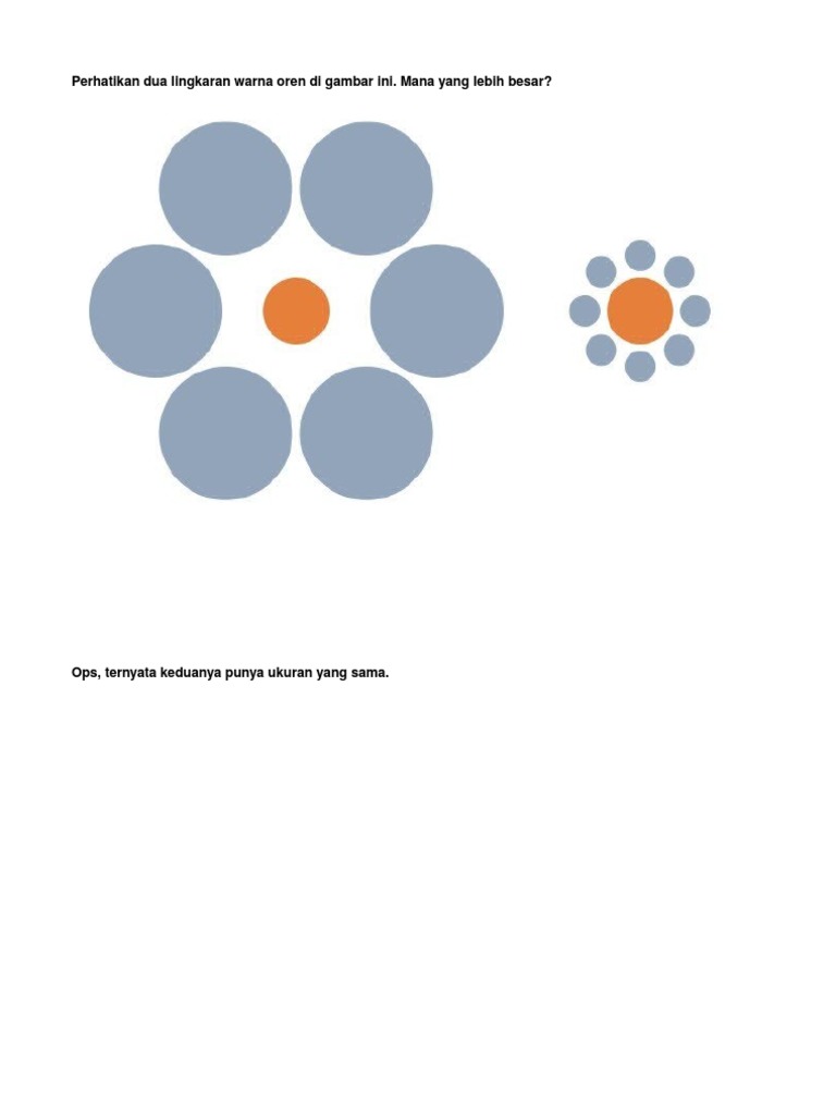 Perhatikan dua lingkaran warna oren di gambar ini. Mana yang lebih besar?