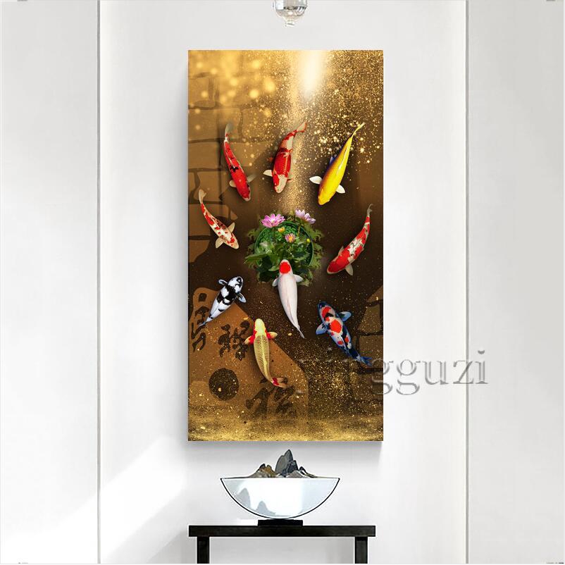 Bingkai Lukisan Bahan Kayu Solid Gaya China Gambar Sembilan Ikan Keberuntungan | Shopee Indonesia