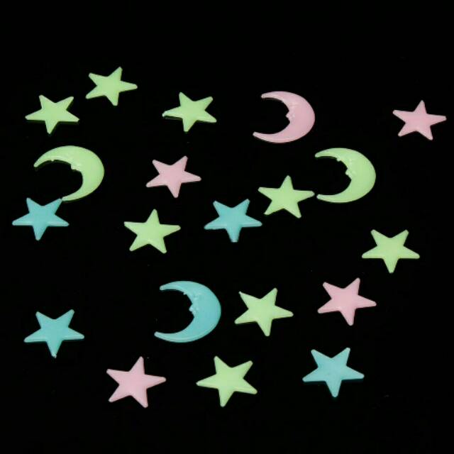 20 pc Biji Tempelan Hiasan Dinding Bulan Bintang Star Moon glow in the dark Menyala dalam gelap | Shopee Indonesia
