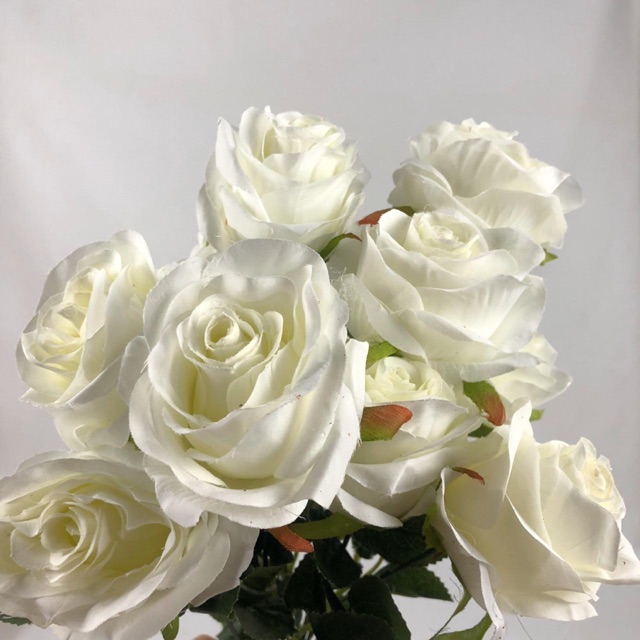 Bunga Rose mekar 10 kuncum - putih / bunga plastik / daun plastik | Shopee Indonesia