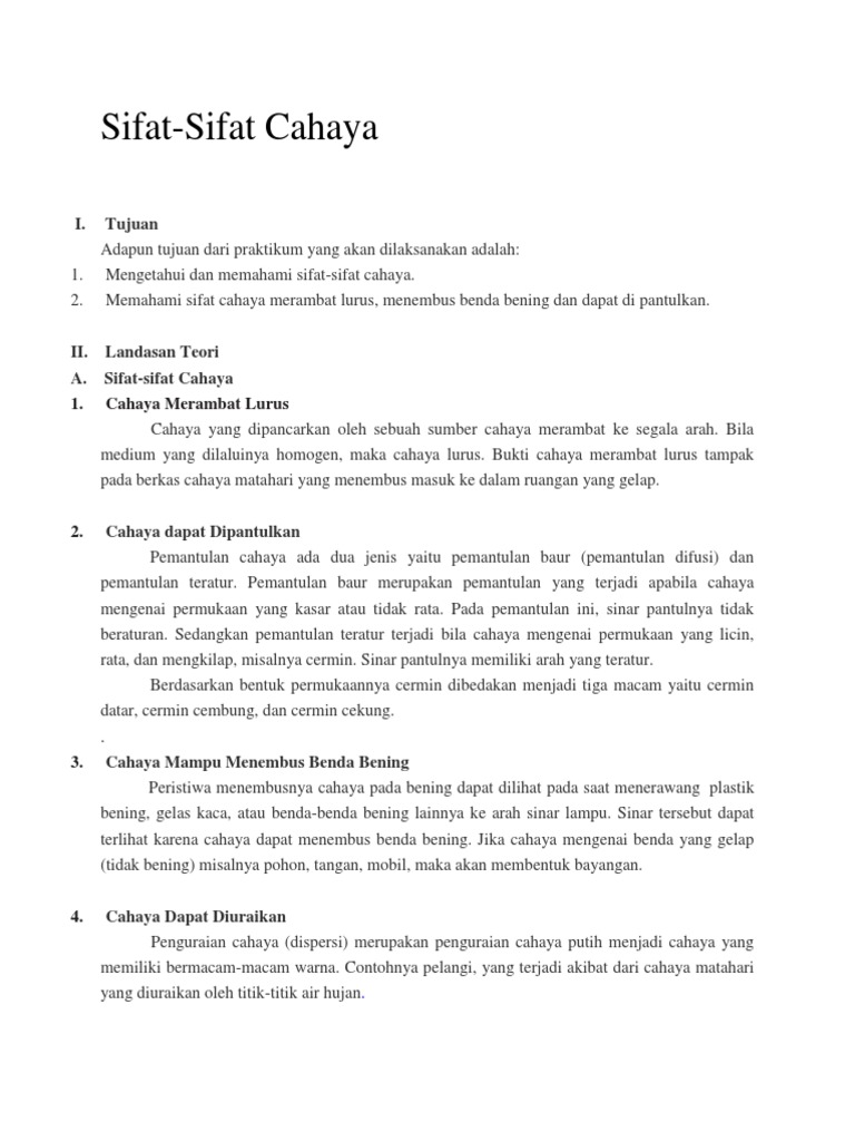 Anak IPA: Penjelasan Cahaya Lengkap Jelas Docx