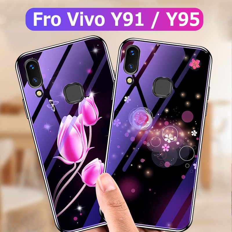 For VIVO Y91/Y95 Floral Patterned Blue Ray Glass+TPU Shockproof Backcover Case | Shopee Malaysia