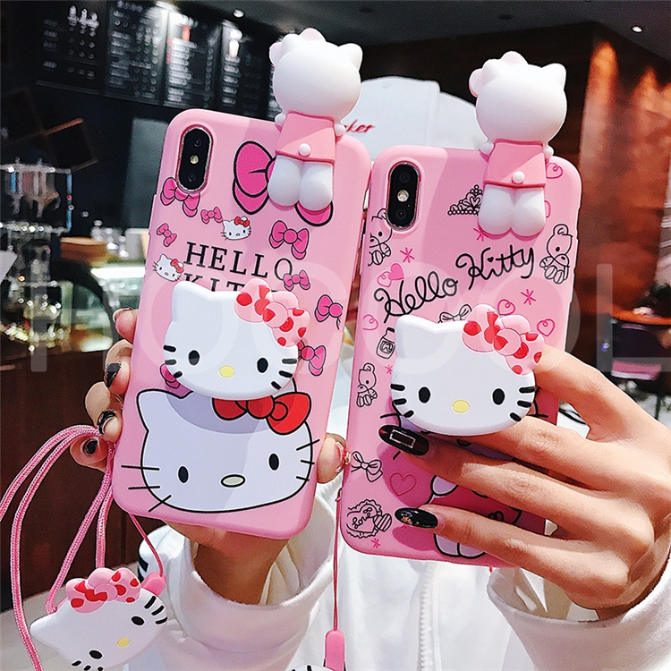 Casing Case Dompet Kulit Motif Kartun Boneka + Tali Lanyard untuk iPhone 6 / 6S / 7 / 8 Plus / X / X | Shopee Indonesia