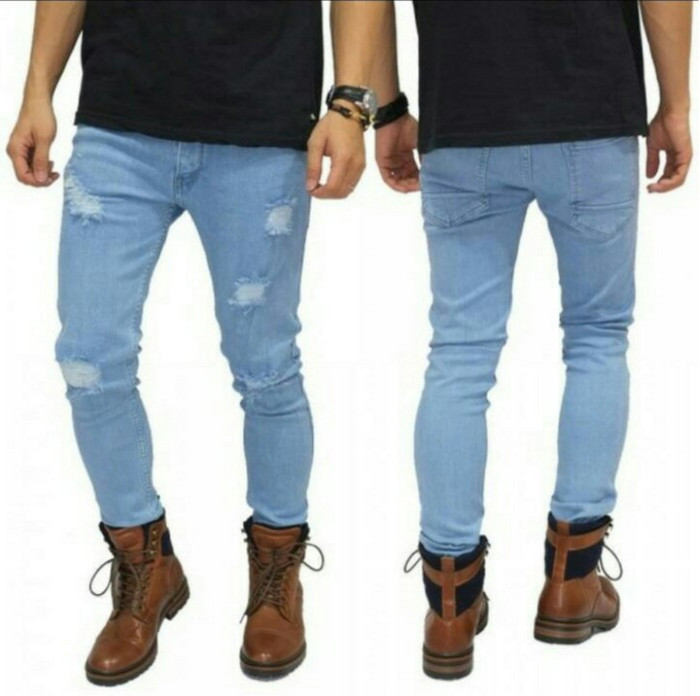 Celana jeans pria ripped sobek robek lutut model skinny pensil di Lapak laras | Bukalapak