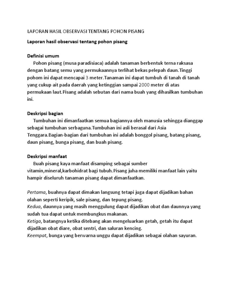 Laporan Hasil Observasi Tentang Pohon Pisang