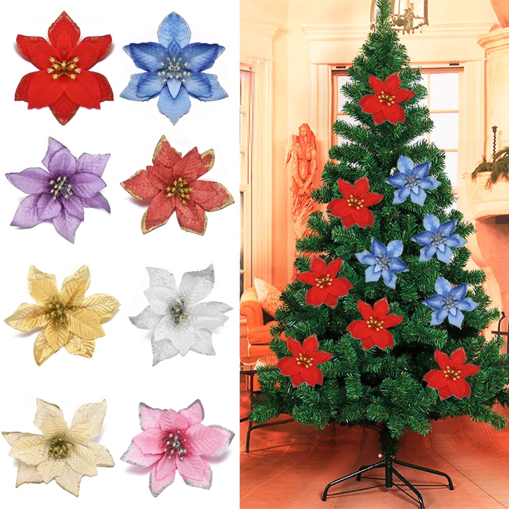 10Pcs Bunga Glitter untuk Dekorasi Pohon Natal (13cm) | Shopee Indonesia