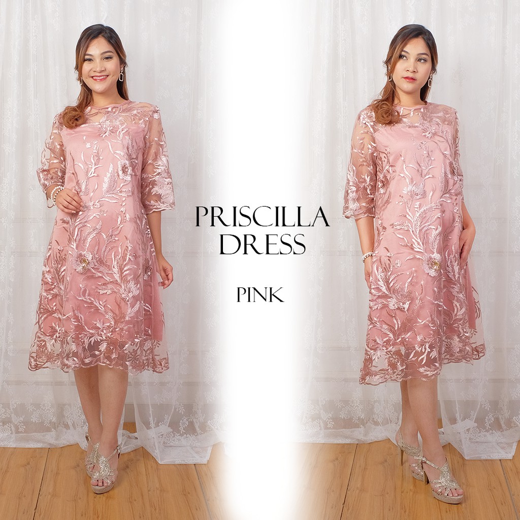 Jual Dress Brokat Cewek Baju Pesta Wanita Terusan Midi Lengan Pendek - Merah Muda - Kota Bogor - Wingmar | Tokopedia