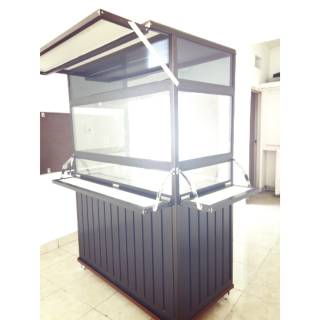 Produk Jualan / Grobak Kekinian » Booth Jualan Makanan dan Minuman » Booth Makanan & Minuman Kombinasi Etalase Kaca Terima Bikin Booth Exhibition - Gawang/Rak Bazaar - Furniture Interior Apartment
