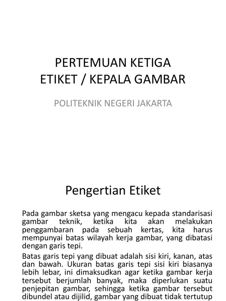 Pertemuan Ketiga Etiket / Kepala Gambar: Politeknik Negeri Jakarta