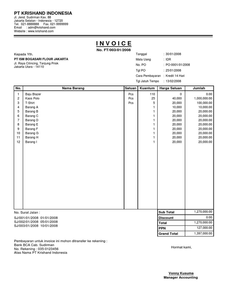 Contoh Faktur Penjualan