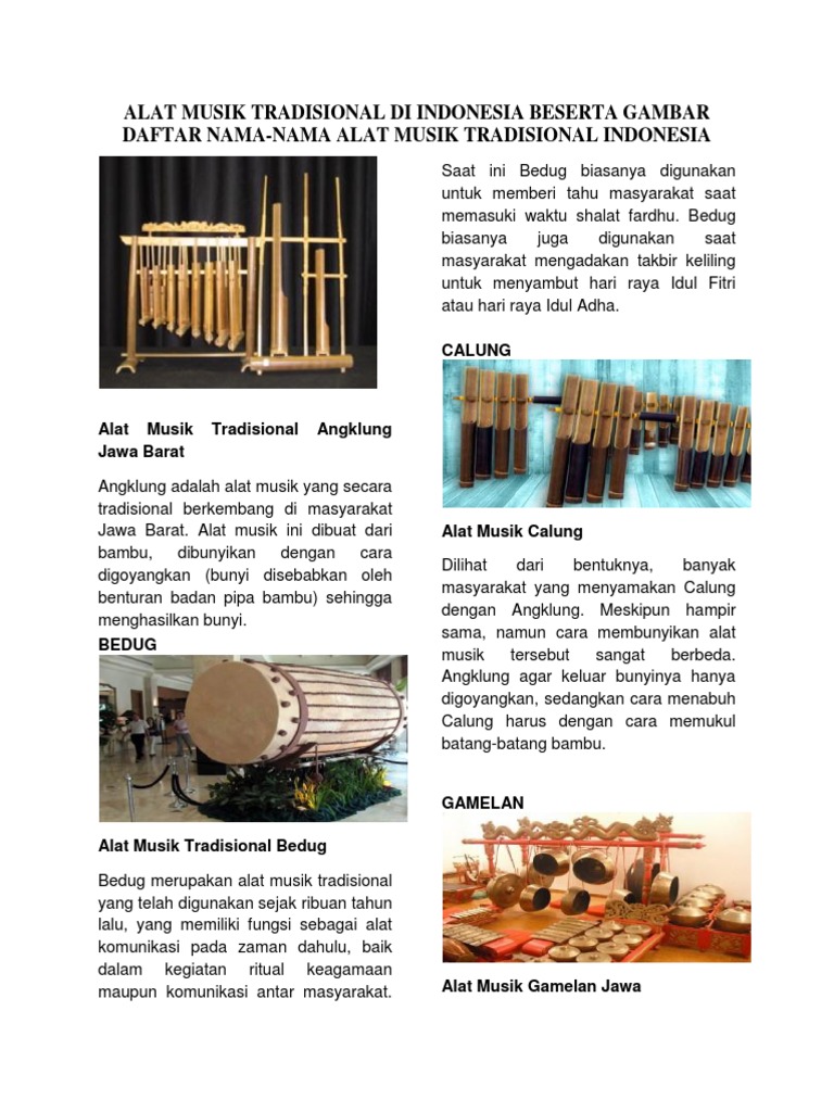 Nama-nama Alat Musik Tradisional dari 34 Provinsi di Indonesia - Berbagi Ilmu Pengetahuan Umum