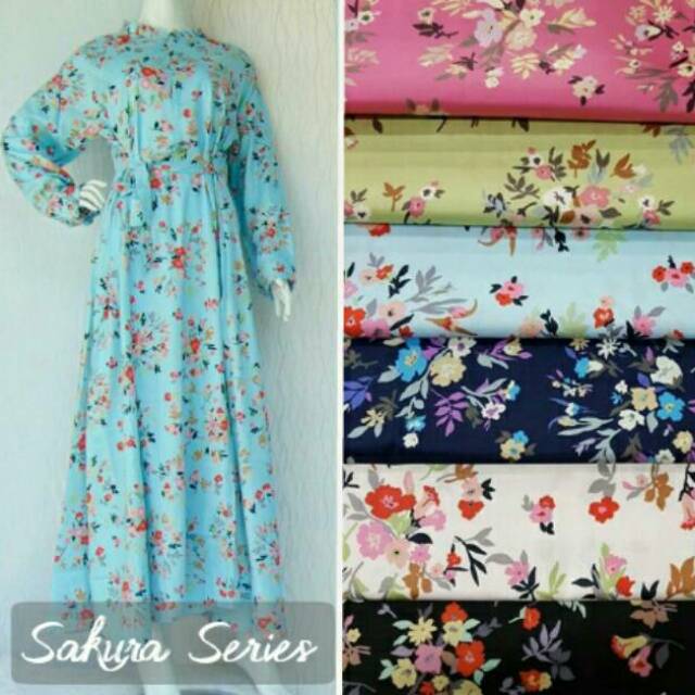 Sakura syari by amelia, gamis katun jepang motif bunga – Butik Destira Jogja