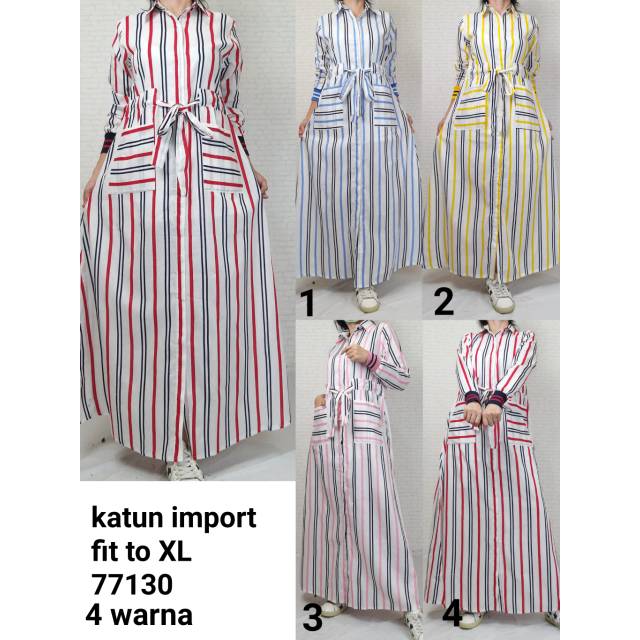 Gamis katun garis tali kerut | Shopee Indonesia