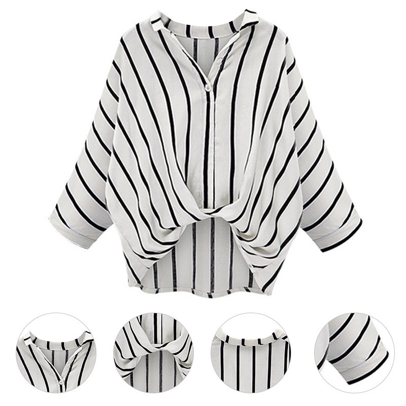Kemeja Wanita dengan Model Potongan Longgar dan Motif Garis-Garis Vertikal Bergaya Stylish | Shopee Indonesia