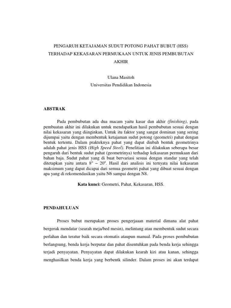 PDF) Pengaruh Parameter Potong dan Geometri Pahat Terhadap Kekasaran Permukaan Pada Proses Bubut | Fuad hasan - Academia.edu