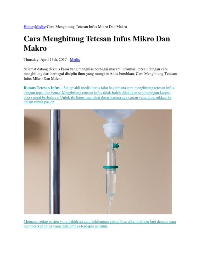 Cara Menghitung Tetesan Infus Mikro Dan Makro