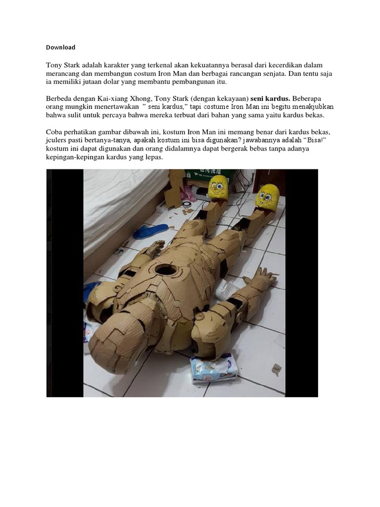 Siswa 20 thn Menciptakan Iron Man Dari Kertas Kardus - Hasilnya Bener2 Kren! - Page 6 | KASKUS