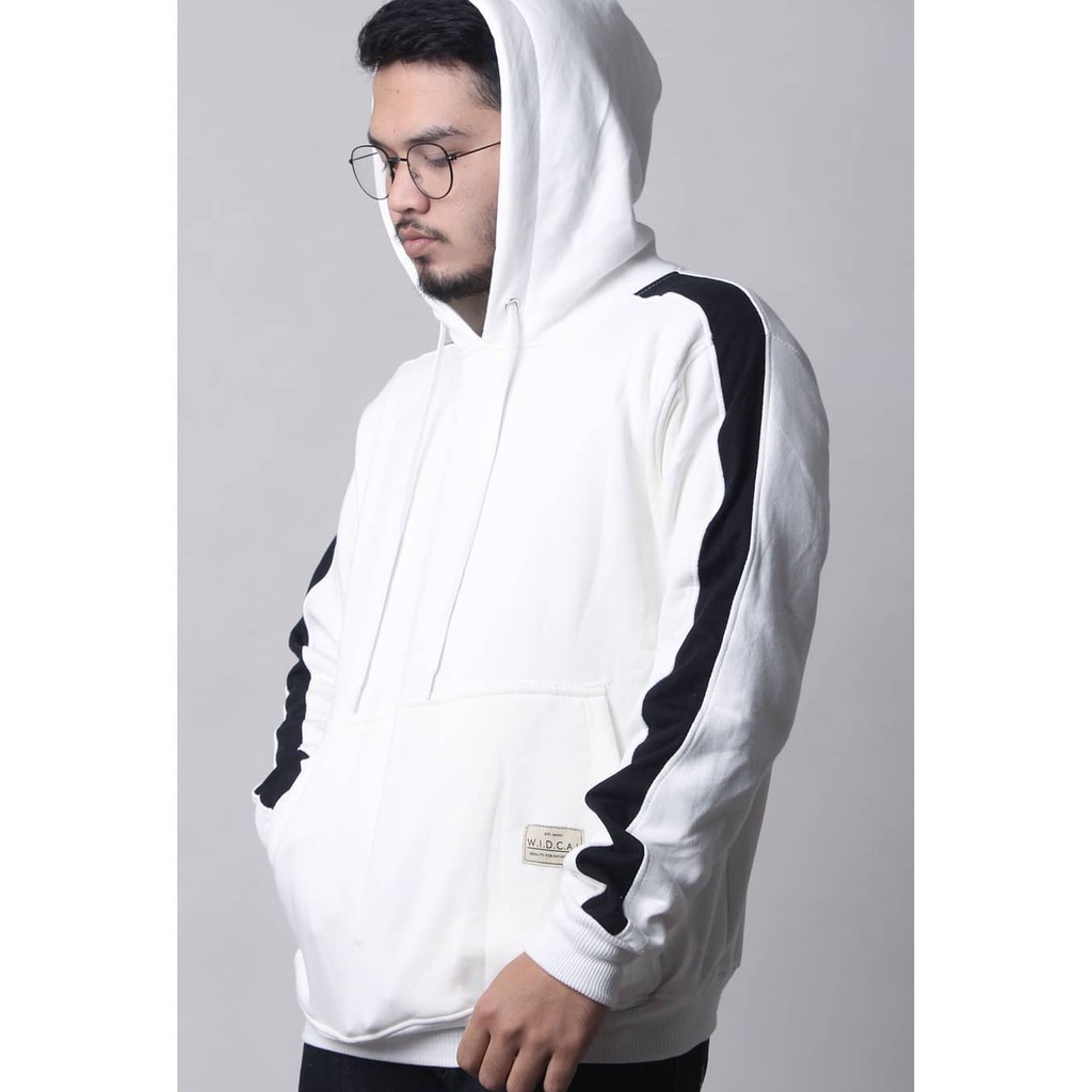 JAKET POLOS HOODIE PUTIH/JAKET PUTIH LENGAN LIST HITAM/WIDCAL LIST BW | Shopee Indonesia