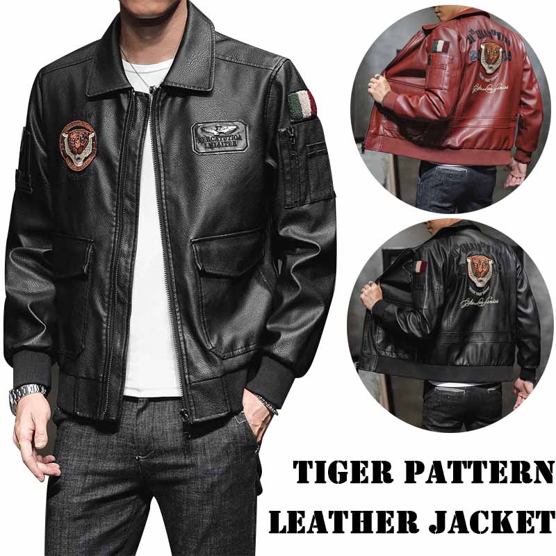 Jaket Kulit Motor Casual Pria Lengan Panjang Model Korea Motif Gambar Harimau | Shopee Indonesia