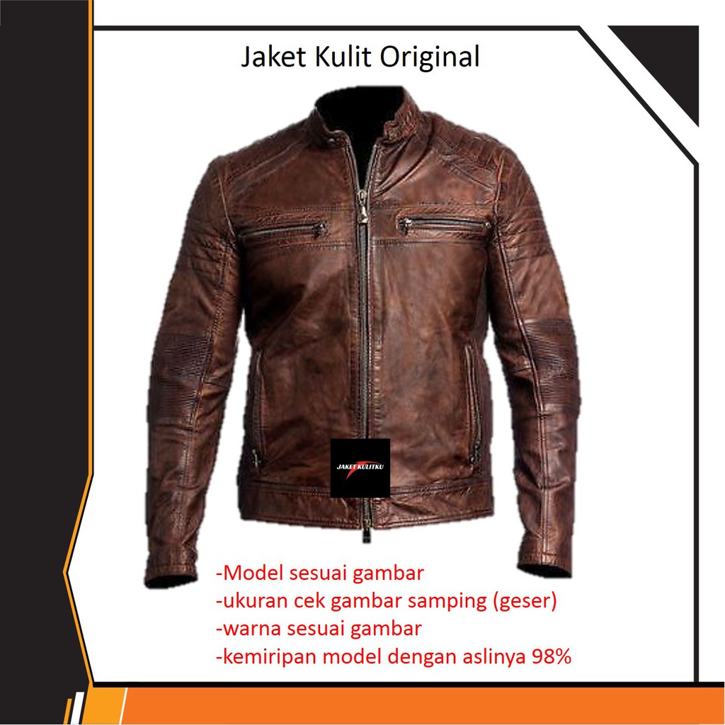 Jaket Kulit Asli Original Garut Kualitas Super Untuk Pria Yang Suka Motor warna Coklat Tua | Shopee Indonesia