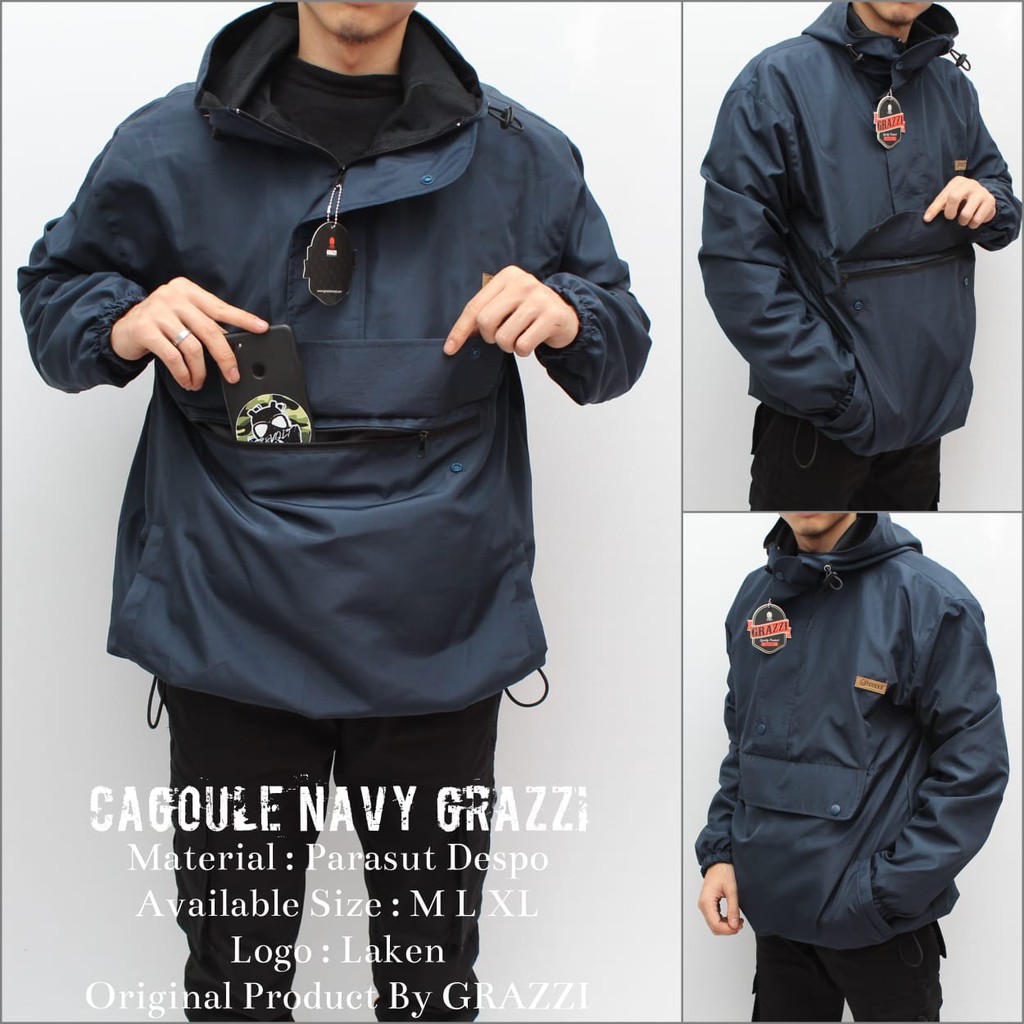 JAKET CAGOULE NAVY ORIGINAL GRAZZI ARRIVAL - JAKET PARASUT PRIA TERBARU OK010123 | Shopee Indonesia