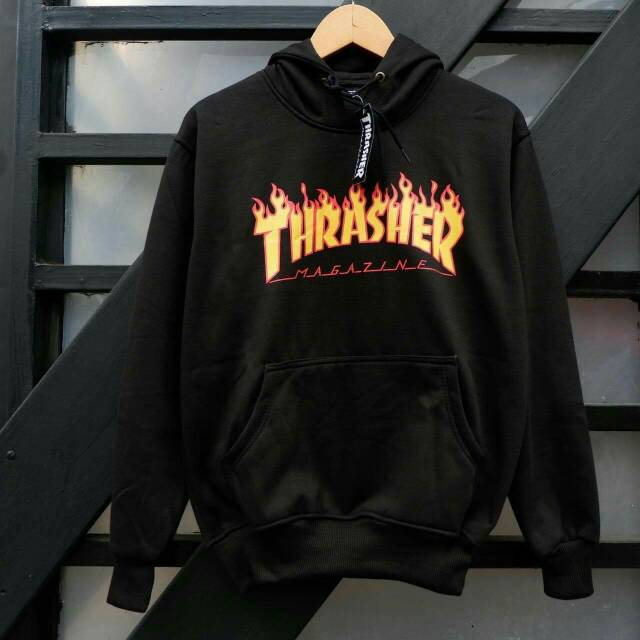 Thrasher jaket sweater hoodie thrasher api hitam hoodie pria wanita ready size M sampai XL | Shopee Indonesia