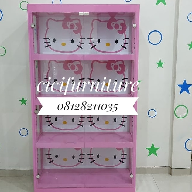 New Lemari Rak Piring 3 Pintu Sablon Kaca Kartun Hello Kitty Super Keramik di Lapak Tiara Amanda Saqira | Bukalapak