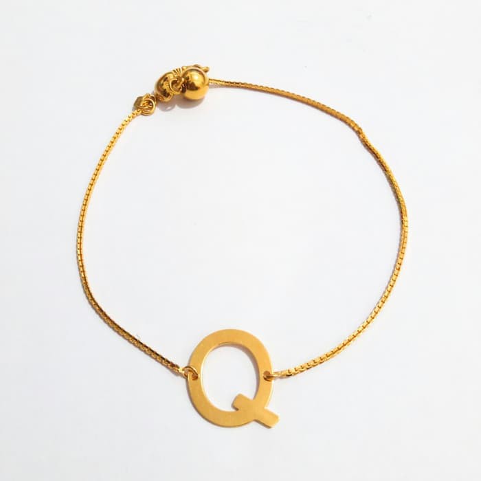 Gelang emas huruf Q kadar 375 , 0.40gram | Shopee Indonesia