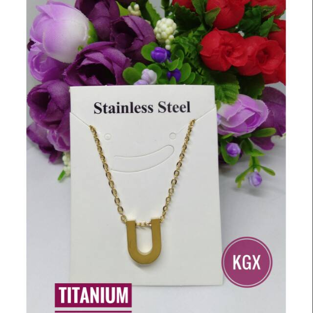 Kalung titanium nagita huruf u emas | Shopee Indonesia