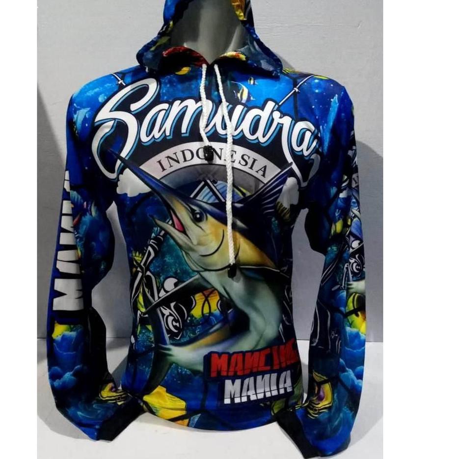 kaos jersey mancing mania mantap,bahan adem ada penutup kepala anti panas cocok pecinta mancing | Shopee Indonesia