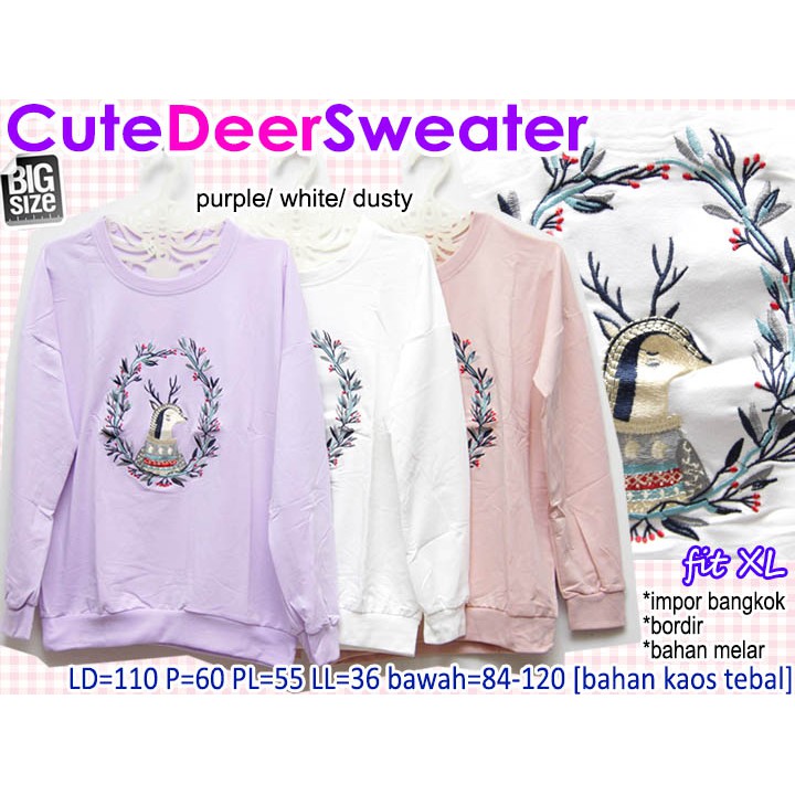 Sweater jumbo wanita impor XL CUTE DEER, kaos tebal, gambar bordir, tangan panjang, melar bagus | Shopee Indonesia
