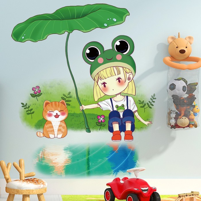 Kartun stiker dinding kamar anak-anak ruang TK kamar tidur gadis wallpaper lukisan dinding stiker ke | Shopee Indonesia