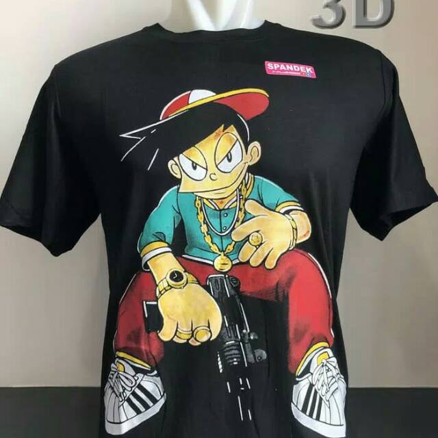 Kaos baju distro kartun NOBITA TATO 3D - Hitam, L Murah | Shopee Indonesia