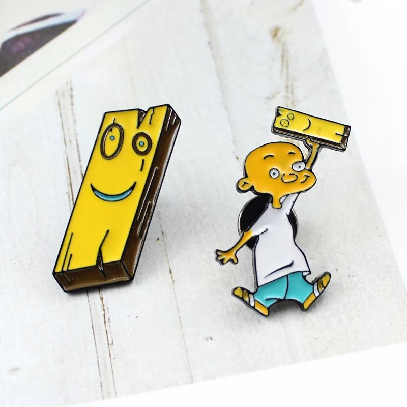 Anime Karakter Kartun Kecil Kepala Botak Lucu Blok Kayu Enamel Bros Keren Anak Laki laki Kepribadian Badge Kuning Denim Pin|Bros| - AliExpress