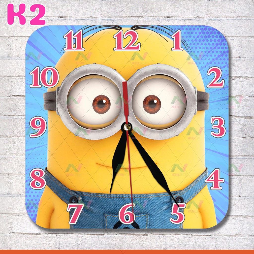 K2 JAM DINDING KARAKTER MINIONS KARTUN ANAK LUCU MODEL KOTAK PERSEGI 25cm | Shopee Indonesia