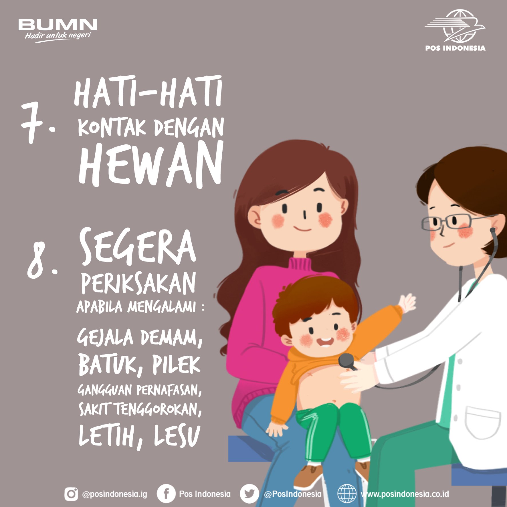 POS INDONESIA “7. Berhati- hati bila kontak dengan hewan, 8. Segera periksakan ke dokter bila mengalami gejala batuk, pilek, gangguan pernafasan, sakit tenggorokan, letih & lesu.… https://t.co/VmchoRPcNw”
