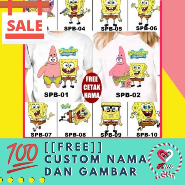 KAOS ANAK KAOS CUOPLE KELUARGA GAMBAR SPONGEBOB KAOS CUSTOM GRATIS SABLON NAMA & GAMBAR | Shopee Indonesia