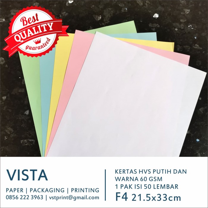 Jual Kertas HVS Putih / HVS Warna F4, 60 Gsm, 60 gram - Putih - Kota Bandung - Vista | Tokopedia