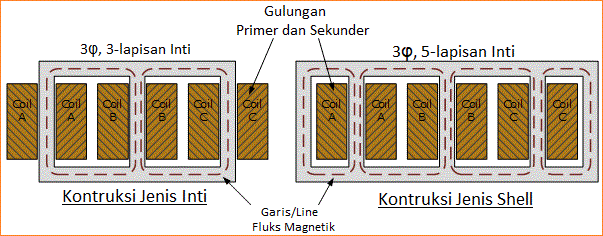 Konstruksi Transformator 3 Fasa - Elektropedia