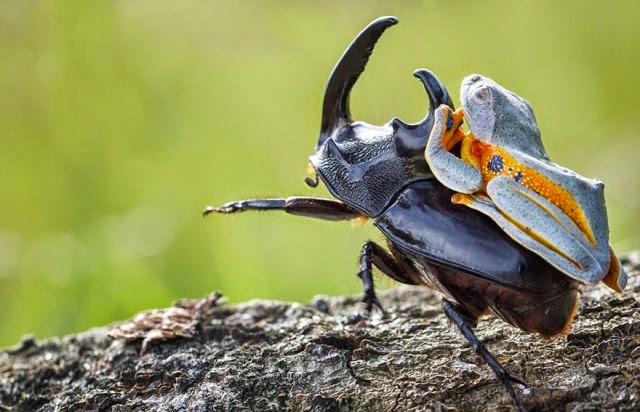 9 Gambar - Lucu, Katak Sedang Menunggang Kumbang Tanduk - Portal Media Online