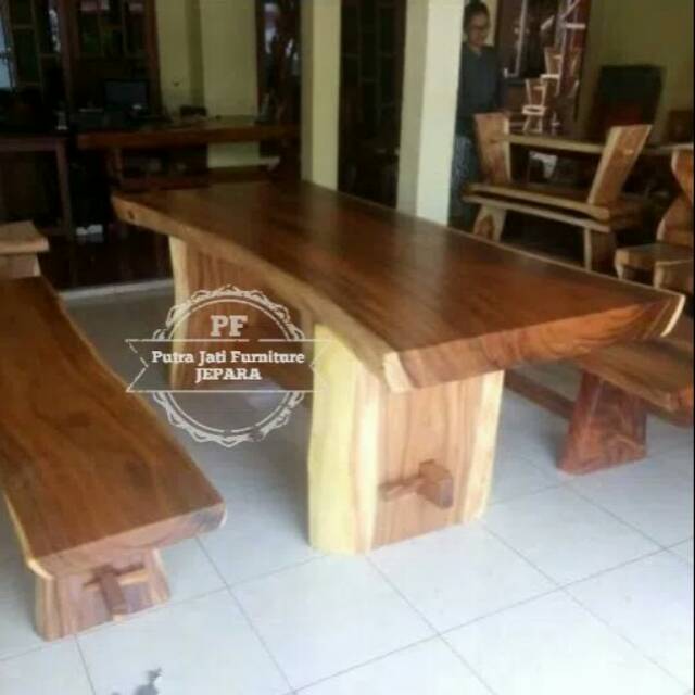 Meja Kursi Taman Bangku Panjang, Kursi Santai Teras Kayu Meh Suar Trembesi Solid Free Ongkir | Shopee Indonesia