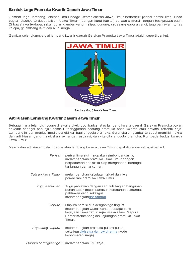 Bentuk Logo Pramuka Kwartir Daerah Jawa Timur