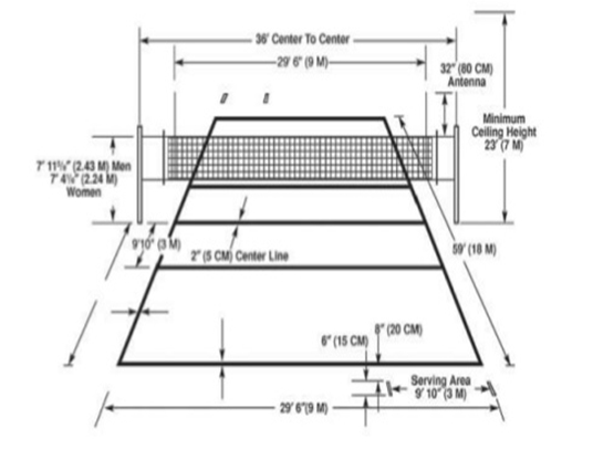 Ukuran Lapangan Bola Voli Standar Nasional Internasional & Gambarnya | Perpustakaan.id